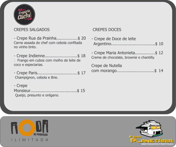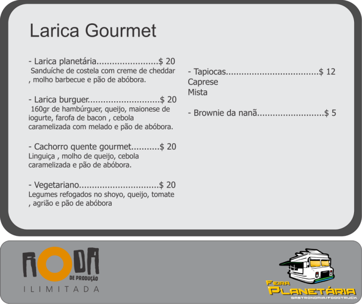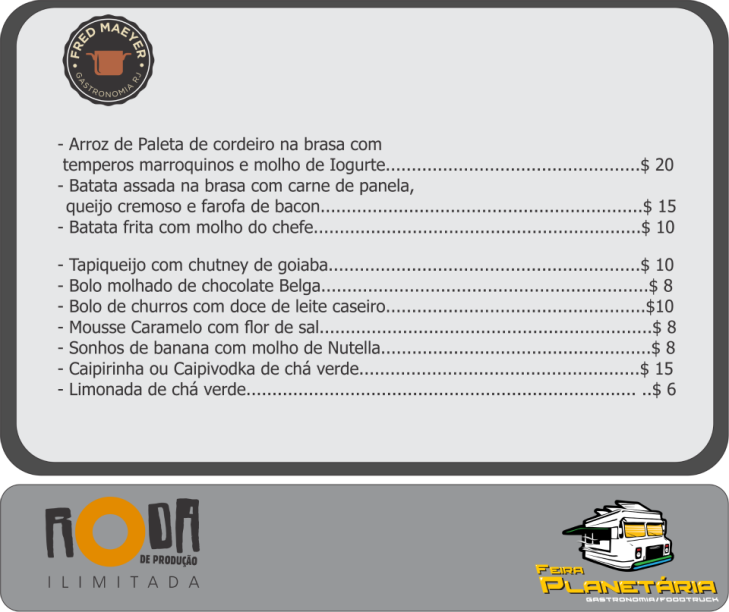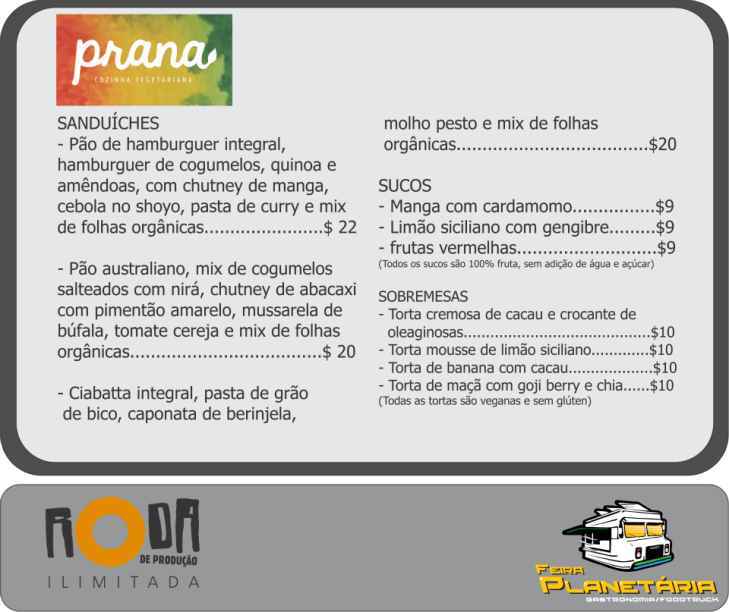 O planetário fica na Rua Vice Governador Rubens Berardo, 100, Gávea. Mais informações na página do evento no Facebook. Confira os cardápios dos food trucks participantes: