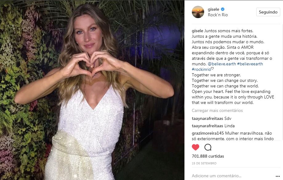 Foto da @gisele sobre o projeto #believe.earth anunciado duranto o RiR