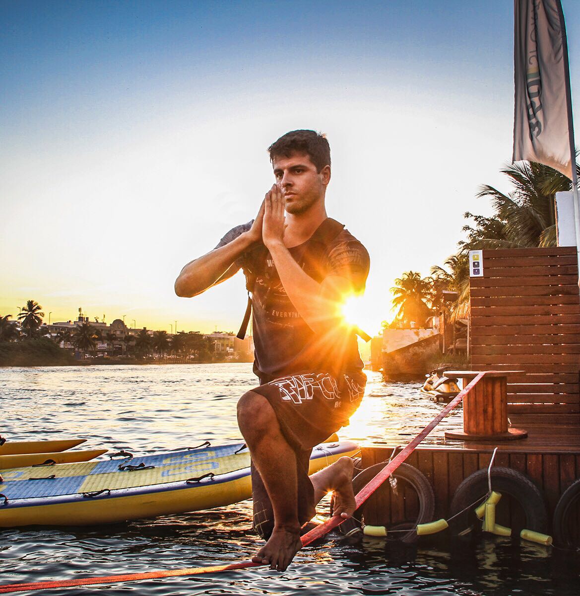 Variação do slackline é feito sobre a água e ganha novos adeptos no Rio